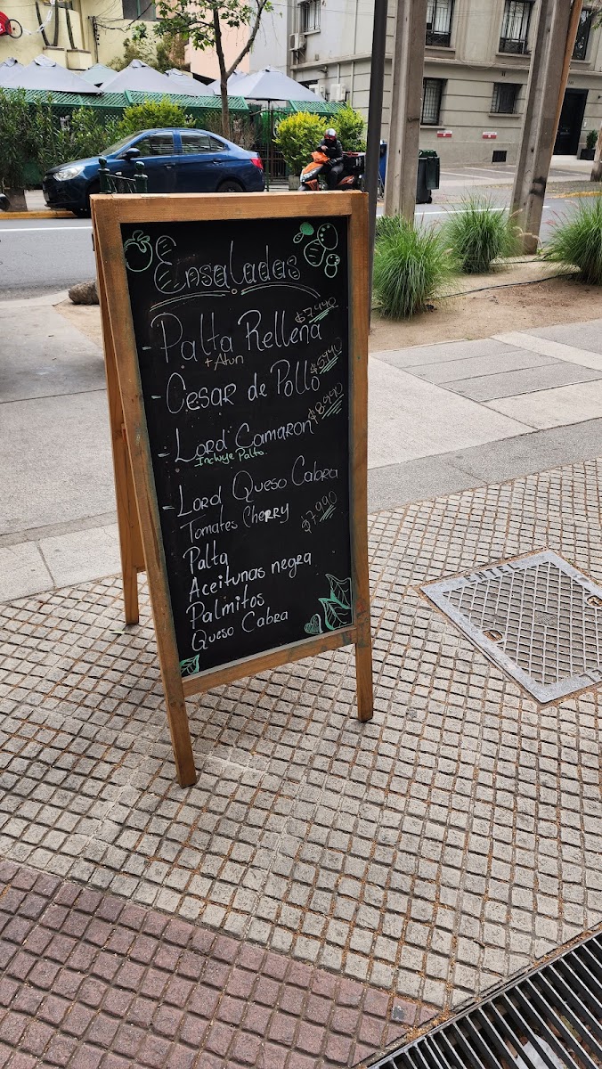Mix de lechugas, jamón serrano, queso cabra, tomate cherry, palta, huevo y aceitunas negras laminadas.